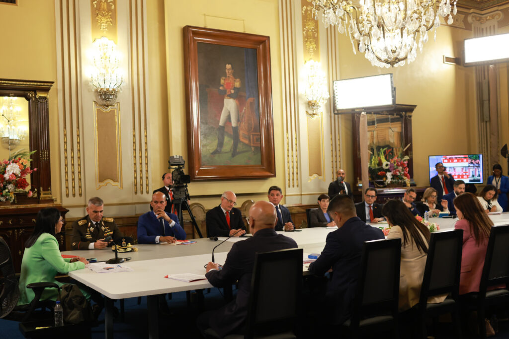 (Prensa MPPP / Caracas, 8 de enero de 2026)-.La presidenta encargada de Venezuela, Delcy Rodríguez, encabezó este miércoles una reunión del Gran Polo Patriótico Simón Bolívar y fuerzas revolucionarias en Caracas, para trazar metas en defensa de la paz y la Soberanía Nacional.